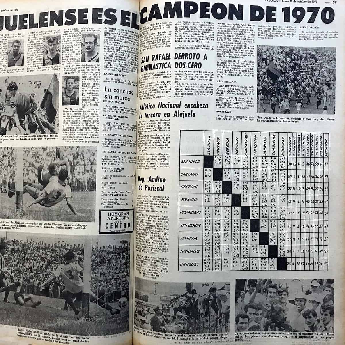Reseñas de periódicos y fotos del Campeonato del 70: