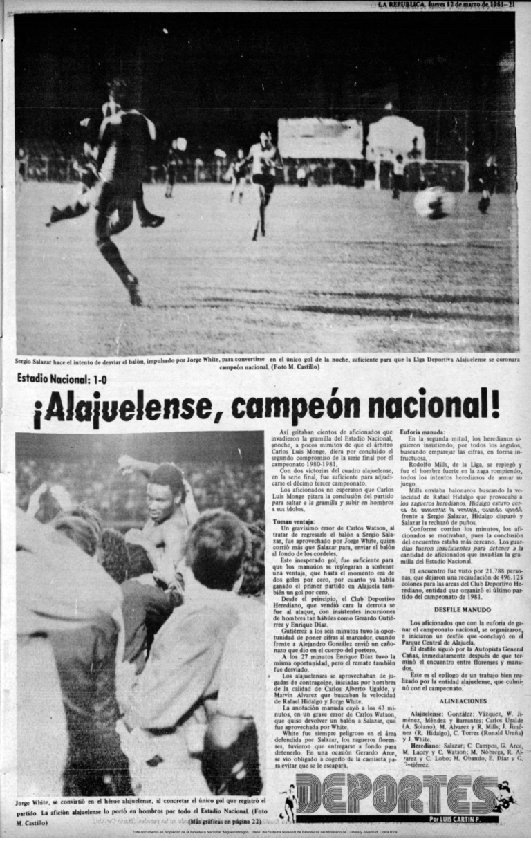 El partido definitivo se celebró el miércoles 11 de marzo de 1981 en el Estadio Nacional, donde LDA ratificó su supremacía venciendo a los locales 1 por 0 con tanto de Jorge White, remate cruzado a los 43 minutos de la etapa inicial que no pudo detener el portero herediano.