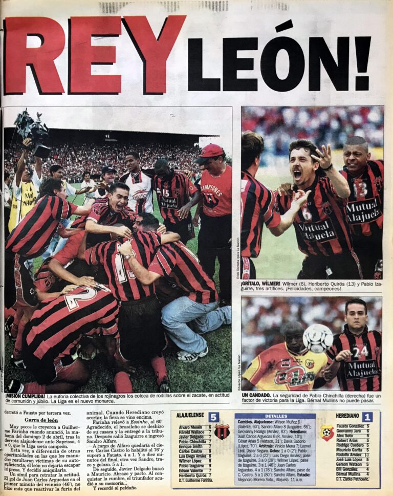 La fiesta quedó para el domingo 14 de mayo del 2000. A estadio lleno, L.D.A recibió al Club Sport Herediano, desde el minuto inicial se trazó la victoria con grandes anotaciones de Pablo Izaguirre, Luis Diego Arnáez y Wilmer López, cuenta que cerraría en el complemento Sandro Alfaro con dos tantos para el definitivo 5 goles por 1.