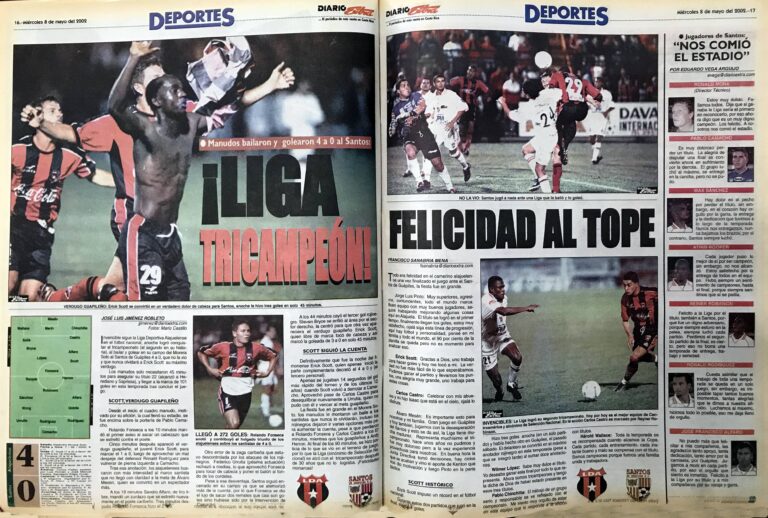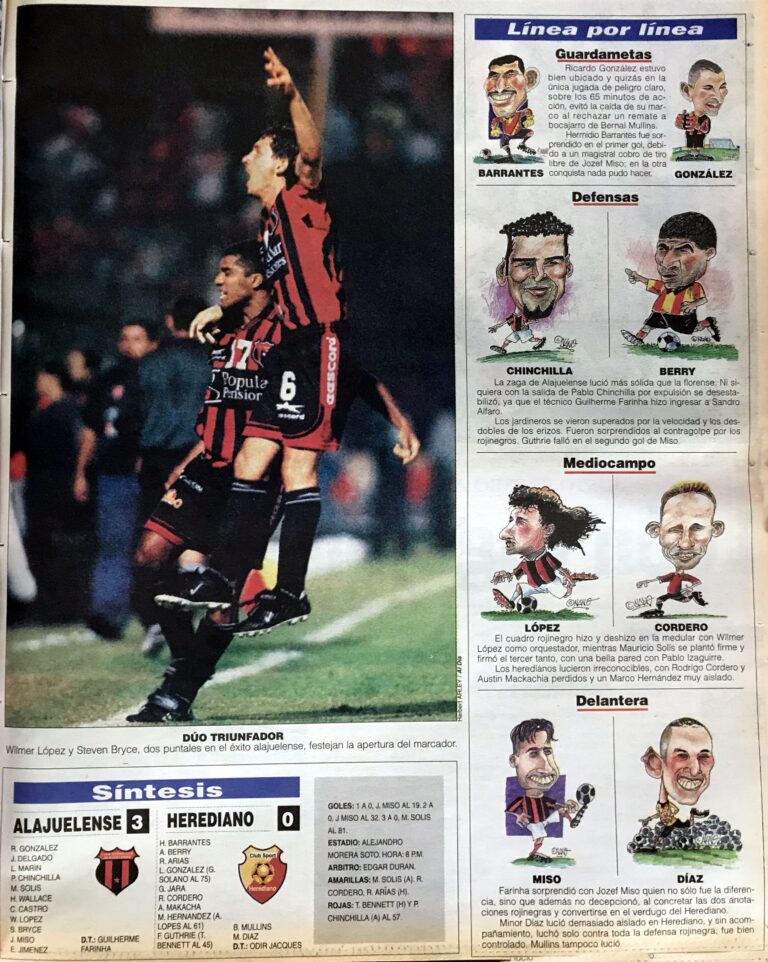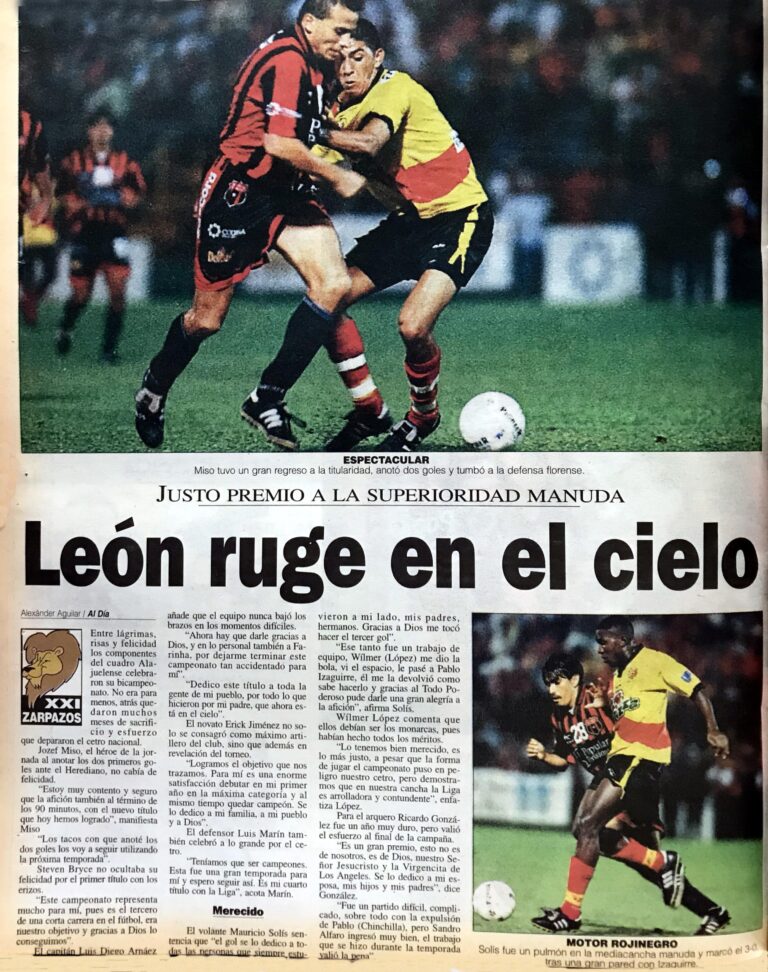 La supremacía rojinegra en el Torneo de Apertura de la campaña 2000-2001 se ratificó el domingo 17 de diciembre en la visita al Estadio Eladio Rosabal Cordero. Un empate bastaba para asegurar esa fase, pero los manudos obtuvieron la victoria de 2 goles por 0 y se proclamaron los campeones.