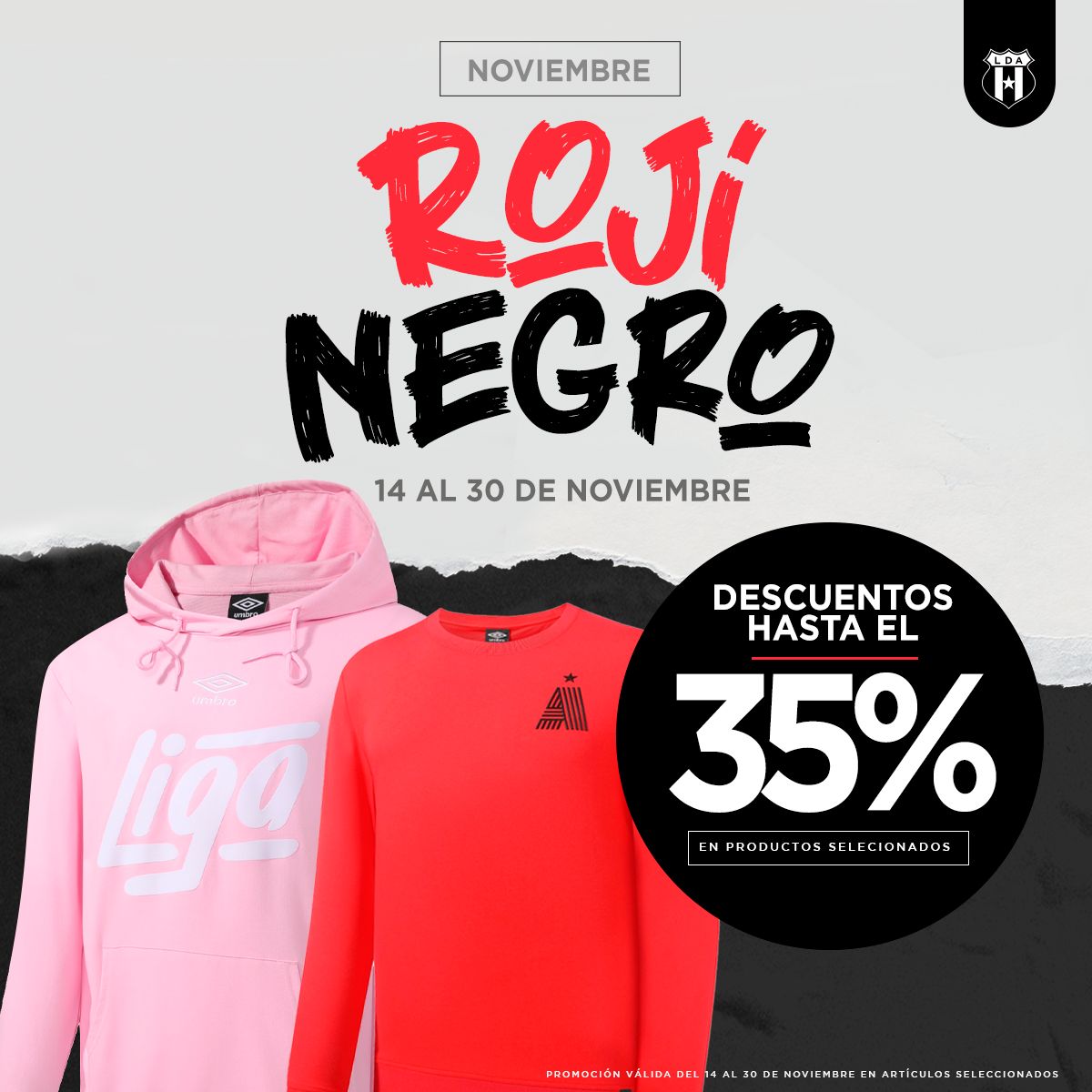 Este próximo jueves iniciará ‘Noviembre Rojinegro’ en nuestras tiendas: una campaña especial dedicada a todos los asociados y fanáticos del club, ofreciendo grandes descuentos en artículos oficiales. Los descuentos, que estarán disponibles a partir de este 14 de noviembre y hasta el día 30 de este mes, serán una gran oportunidad para que los liguistas puedan adquirir sus productos favoritos con descuentos de hasta ¡más de 35% de descuento!